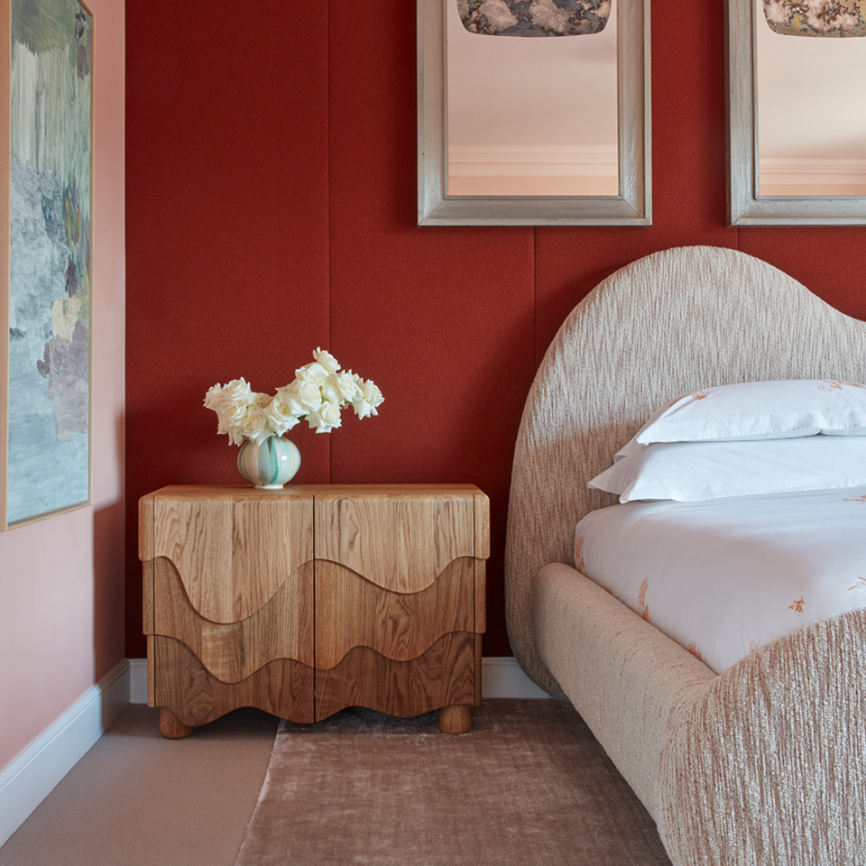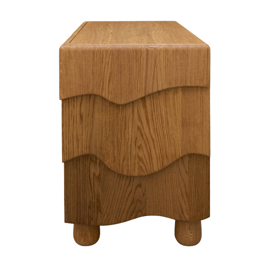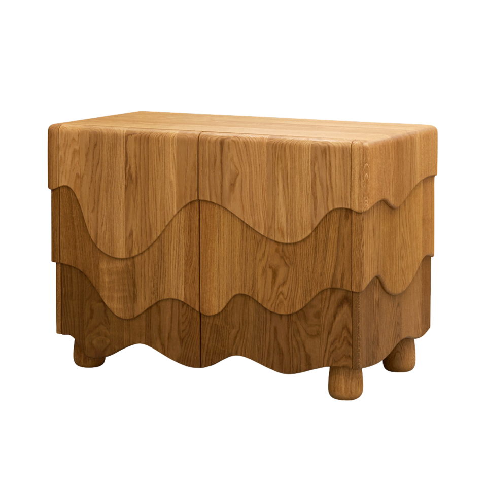 โต๊ะข้างเตียงไม้เนื้อแข็งทันสมัยพร้อมแผงลายคลื่น ตู้เก็บของข้างเตียงสไตล์มินิมอล