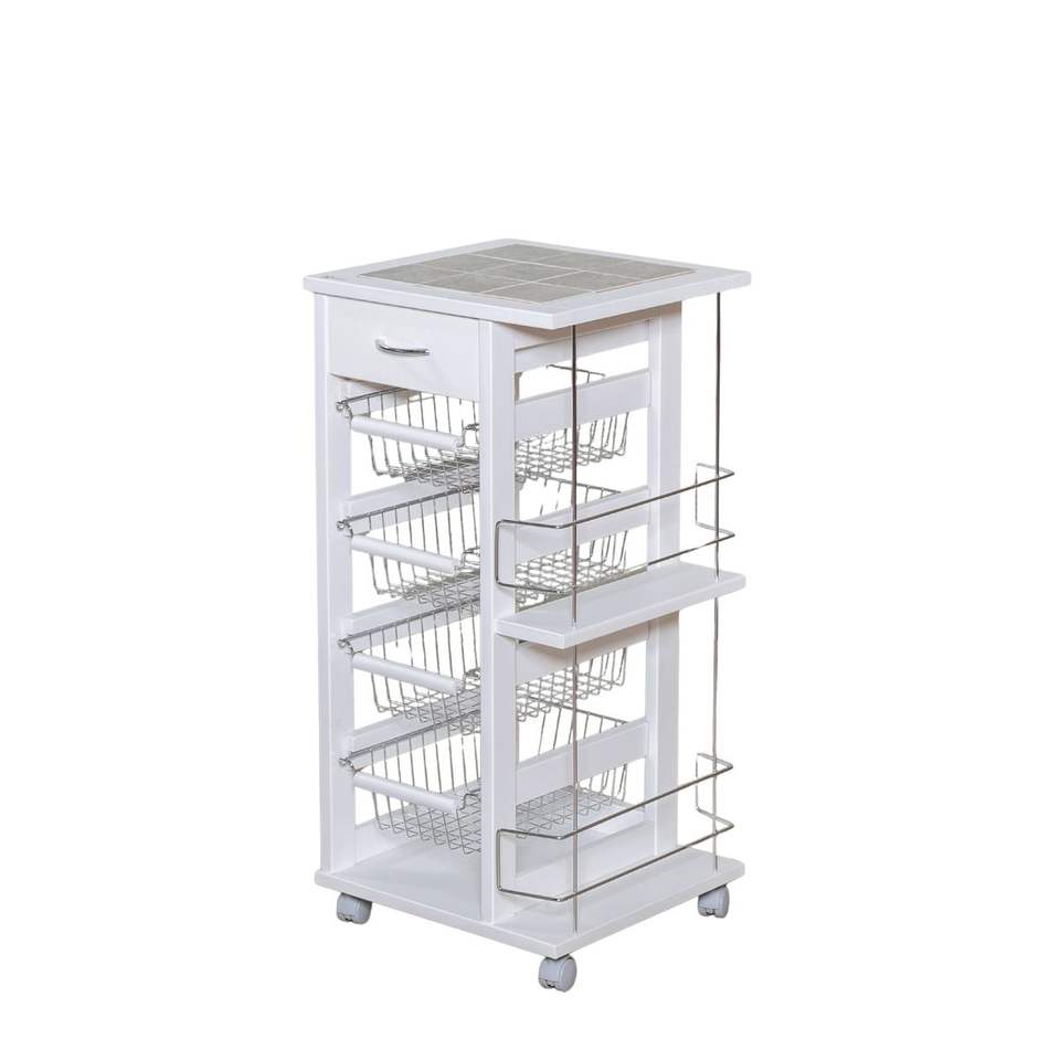 รถเข็นไม้บีชเนื้อแข็งทันสมัยพร้อมท็อปเซรามิกและที่วางขวดเหล็กสำหรับห้องครัวที่เรียบร้อย