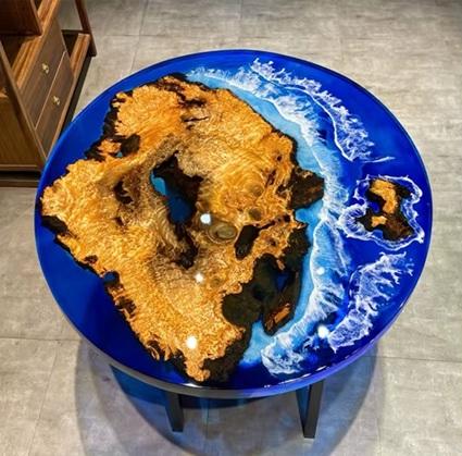 ท็อปโต๊ะเรซินอีพ็อกซี่ไม้เนื้อแข็งที่ทันสมัยเฟอร์นิเจอร์ห้องรับประทานอาหารแบบพับได้สำหรับบ้านหรือห้องครัวอุปกรณ์เสริมห้องนั่งเล่นที่ทันสมัย