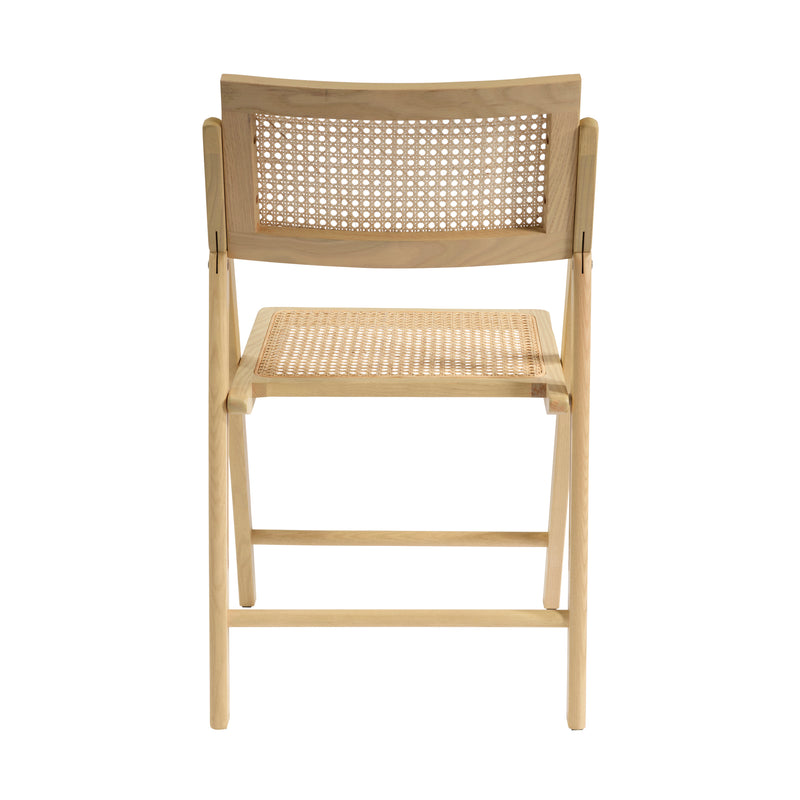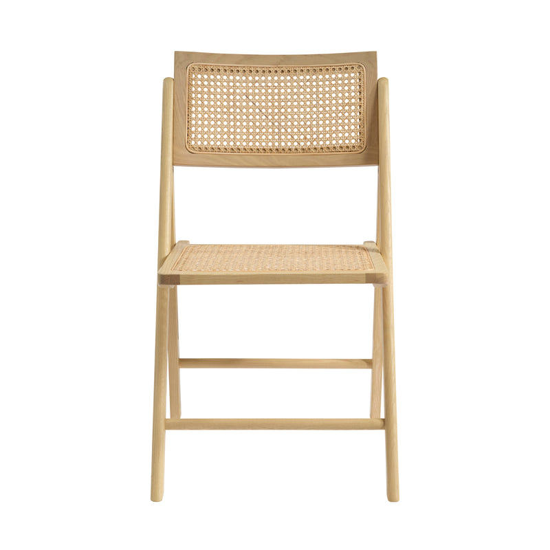 เก้าอี้ทานข้าวพับได้ไม้เนื้อแข็งทันสมัยพร้อมพนักพิงหวายธรรมชาติและเบาะทอ