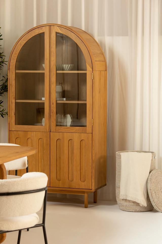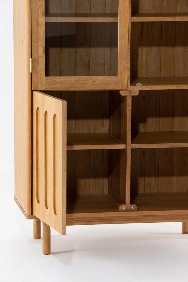 ตู้โชว์ไม้จริงทันสมัย ประตูกระจก สีน้ำตาลอ่อน สำหรับห้องนั่งเล่น โรงแรม ความจุขนาดใหญ่ เป็นมิตรกับสิ่งแวดล้อม ผลิตด้วยมือ