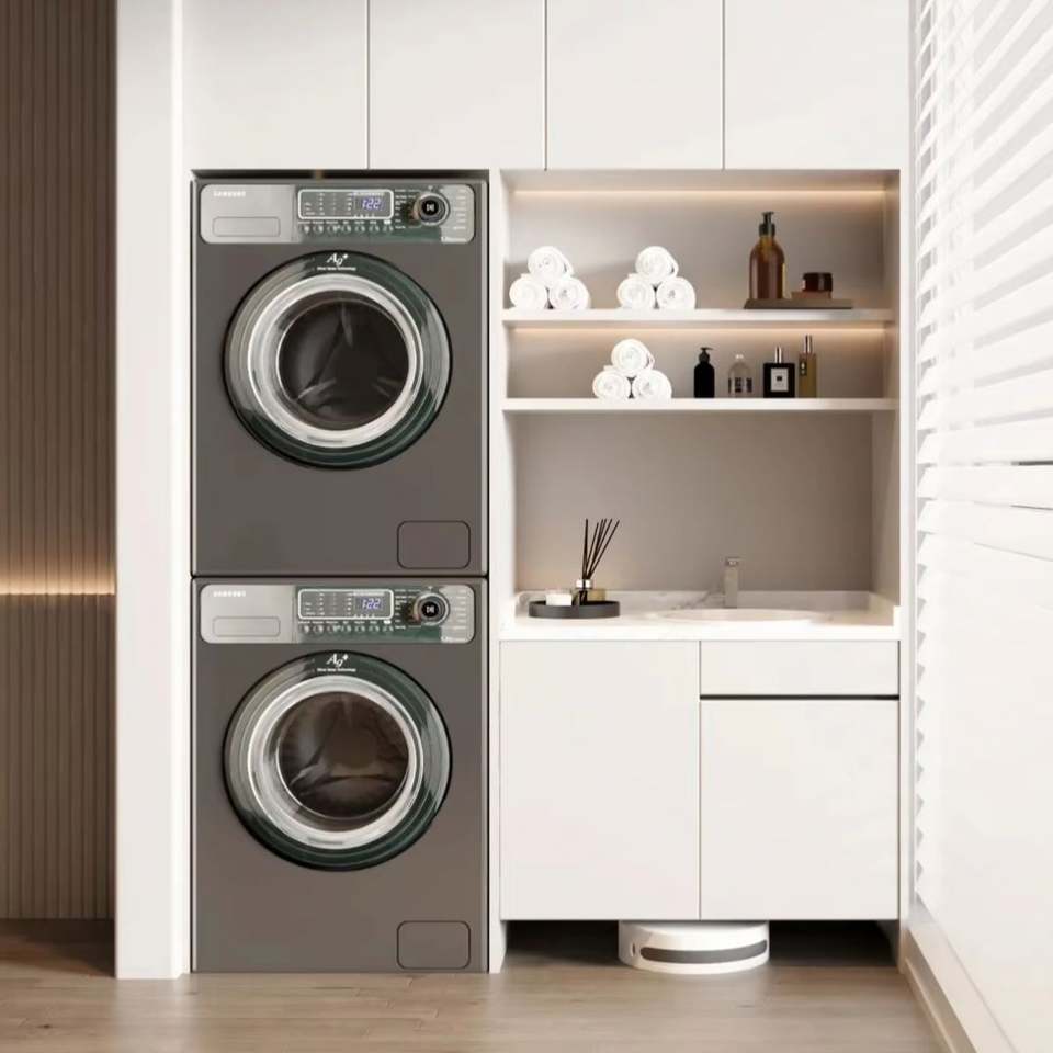 ชุดตู้ซิงค์ห้องซักรีดไม้จริงทันสมัยสำหรับเครื่องซักผ้า ดีไซน์สวยงาม