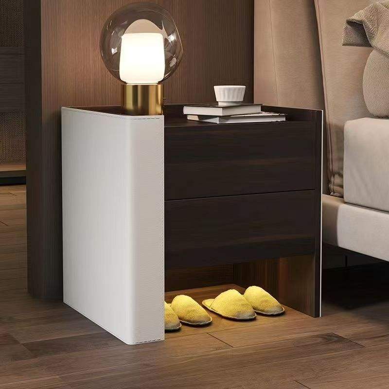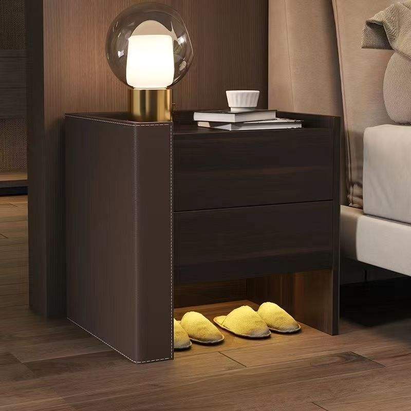 โต๊ะข้างเตียงไม้เนื้อแข็งทันสมัยพร้อมตู้เก็บของหุ้มหนัง เฟอร์นิเจอร์ห้องนอนสำหรับผู้ใหญ่