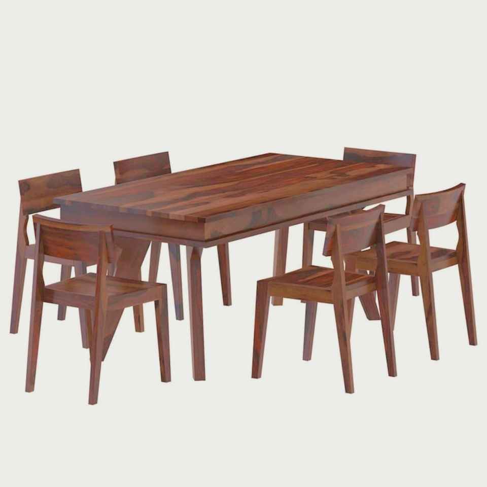 โต๊ะรับประทานอาหารไม้เนื้อแข็งที่ทันสมัยรูปสี่เหลี่ยมผืนผ้ามี6เก้าอี้ที่ตรงกันสำหรับโรงแรมร้านอาหารกลางแจ้งร้านกาแฟห้องนั่งเล่น