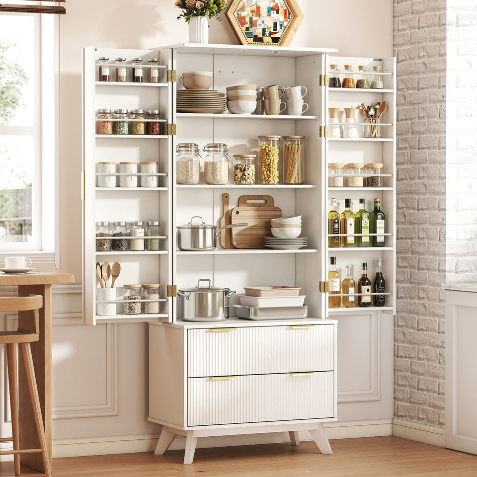 ตู้เก็บของสูงไม้จริงทันสมัย ดีไซน์ 10 ประตู ชั้นวางปรับได้ 2 ลิ้นชัก เป็นมิตรกับสิ่งแวดล้อม กันน้ำ สำหรับห้องครัวและห้องนั่งเล่น