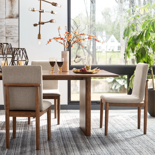 Modern Solid Wood Upholstered Dining Chair, Minimalist Fabric Seat with Wooden Frame for Home Dining Room Furniture
