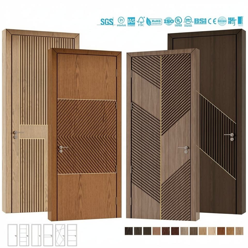 ประตูภายในไม้เนื้อแข็งกันน้ำทันสมัยสำหรับอพาร์ทเมนต์และวิลล่า แกนไม้เนื้อแข็งวอลนัทโอ๊ค