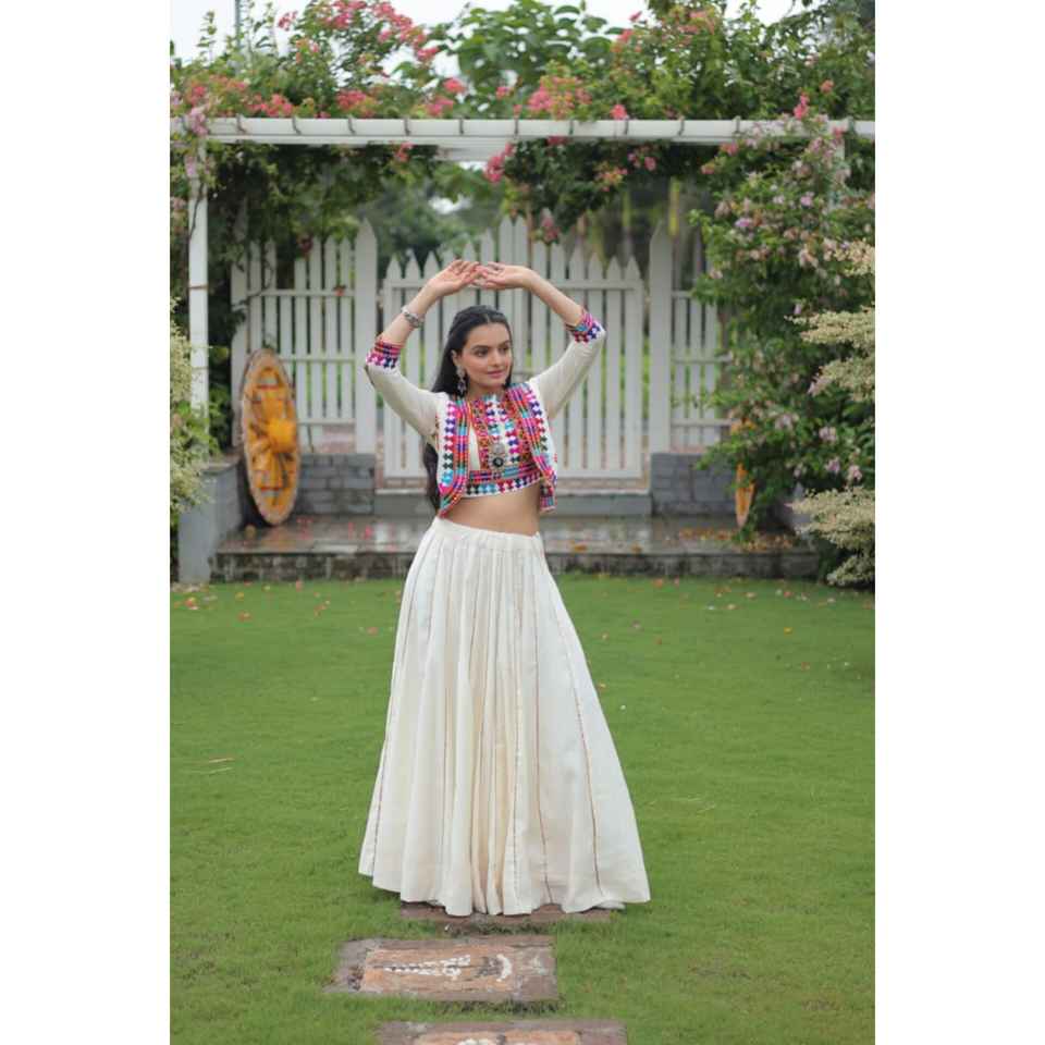 ชุดเลเฮนกาโชลีผ้าไหมโรมันสไตล์โมเดิร์นสำหรับงานเทศกาลนวราตรี แห้งเร็ว เหมาะสำหรับงานปาร์ตี้ มีหลายสีให้เลือก
