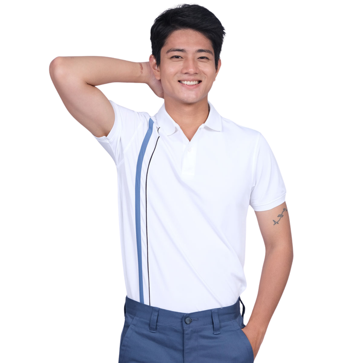 เสื้อโปโลมีท่อหลายเส้นตัดกันด้านหน้า