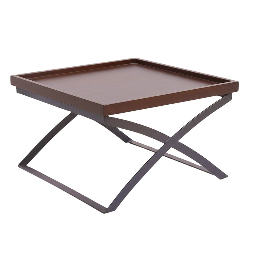 โต๊ะกาแฟทรงสี่เหลี่ยมทันสมัย, โต๊ะแบบเน้นในห้องนั่งเล่นทำจากเหล็กสีน้ำตาลเข้มถาดวางขา