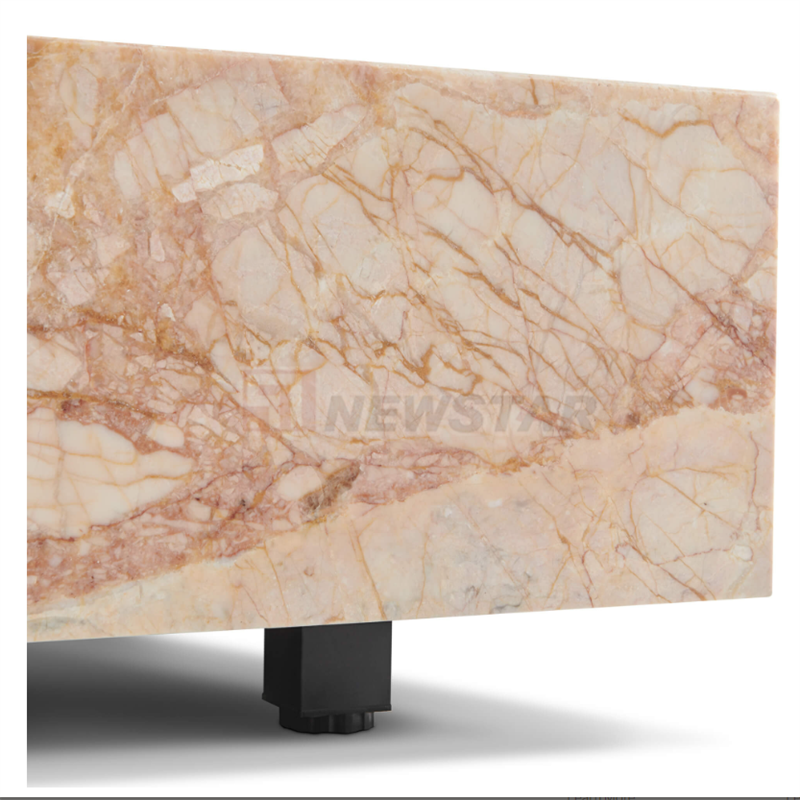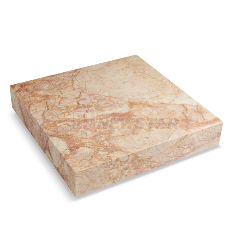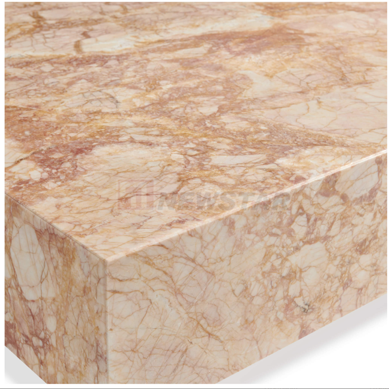 โต๊ะกาแฟหินอ่อนทรงสี่เหลี่ยมแบบโมเดิร์นโต๊ะกาแฟแบบบล็อกต่ำเฟอร์นิเจอร์โต๊ะกาแฟสีชมพูกุหลาบ