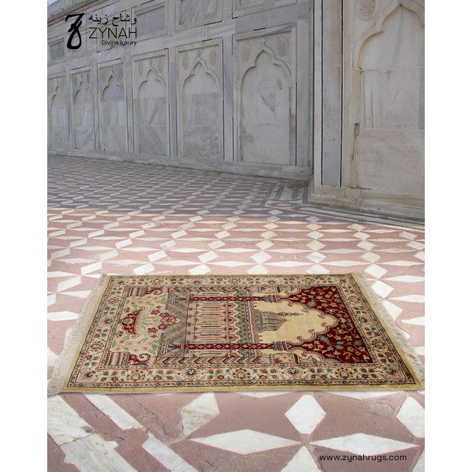 พรมละหมาดทรงสี่เหลี่ยมทันสมัย ยี่ห้อ Zynah ผลิตจากผ้าไหมแท้ ทอแบบ Jacquard นุ่มสบาย ซักได้ ขนาด 2.3x3.6 เมตร เหมาะสำหรับใช้ในบ้าน เดินทาง ปิกนิก สำหรับชาวมุสลิม 'Pearl Prayer'