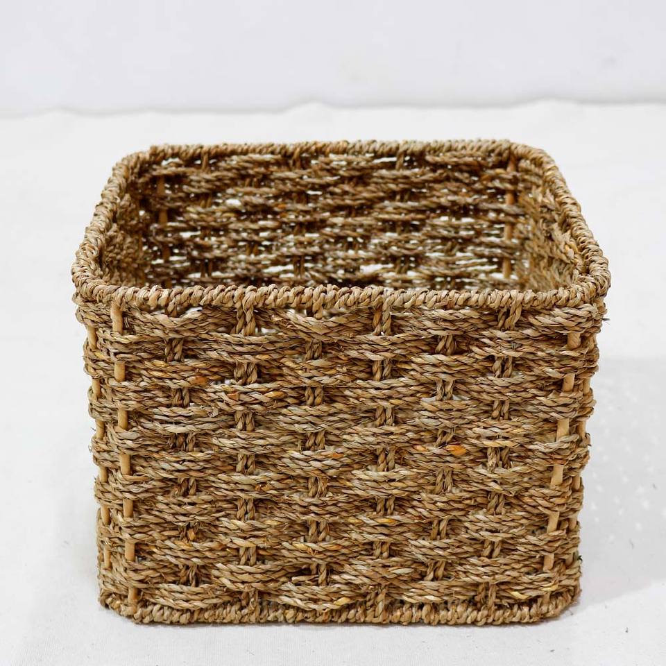 ตะกร้าเก็บของทรงลูกบาศก์แบบเปิด วัสดุจากหญ้าทะเล ดีไซน์ทันสมัย เป็นมิตรกับสิ่งแวดล้อม เหมาะสำหรับใช้ในโรงแรม