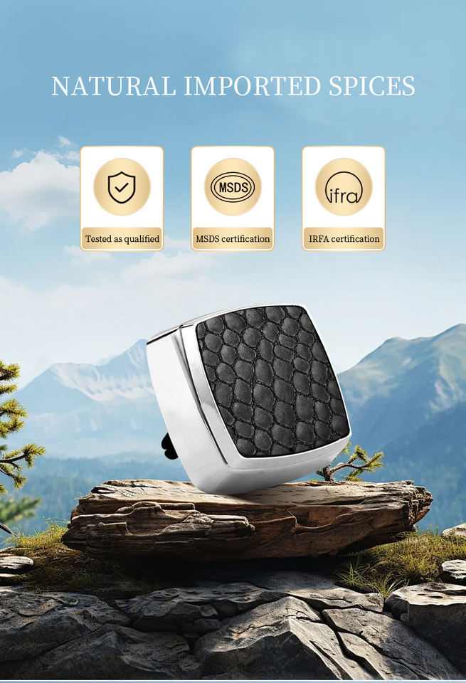 คลิปน้ำหอมติดรถยนต์ทรงสี่เหลี่ยมทันสมัย ผลิตจากอลูมิเนียมอัลลอยคุณภาพพร้อมเคลือบหนัง ดีไซน์เรียบง่าย ใช้เป็นเครื่องหอมภายในรถยนต์
