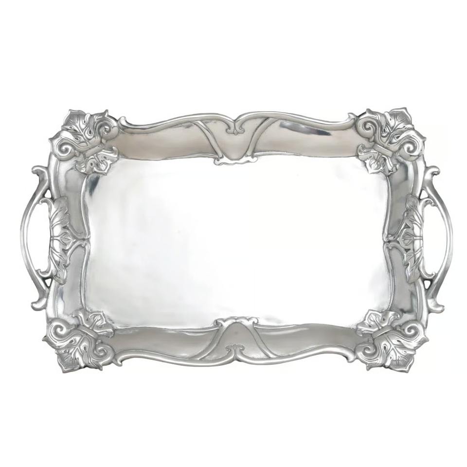 Modern Square Silver Finished Metal Handicraft Tray with Luxury Designer Edge Design for Home Hotels Weddings Everyday Use India