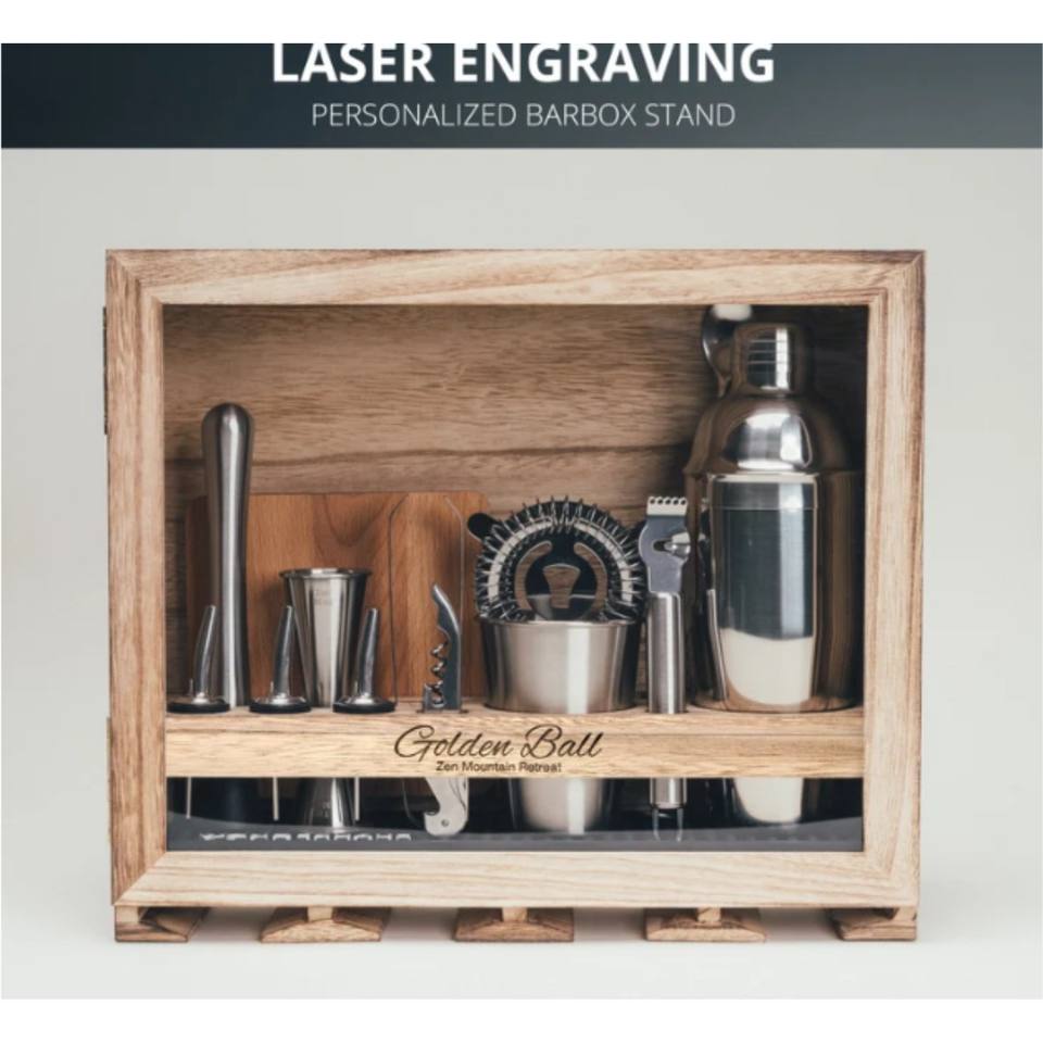 ชุดอุปกรณ์บาร์สเตนเลสสตีลทันสมัย พร้อมแท่นไม้แม่เหล็ก ชุดเครื่องมือบาร์แบบมืออาชีพ พร้อมจิกเกอร์ ที่กรอง และที่เปิดขวด