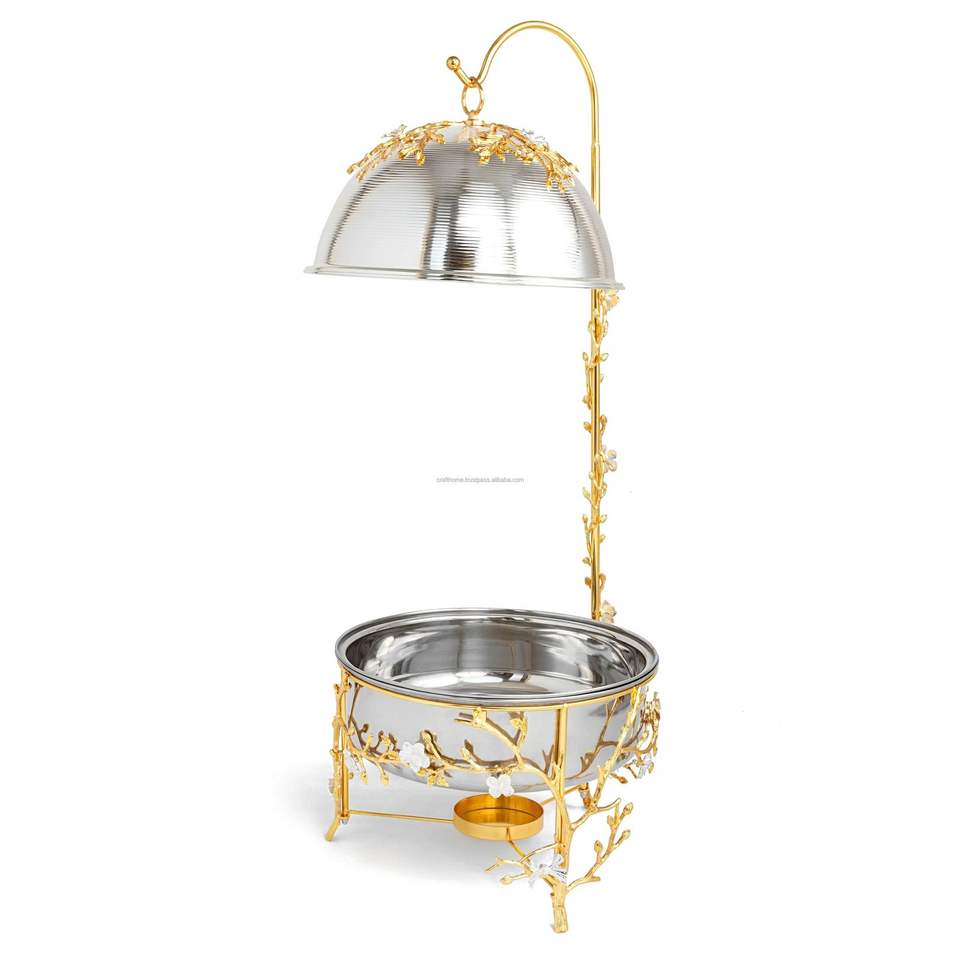 ถาดอุ่นอาหารสแตนเลสแบบทันสมัยพร้อมฝาครอบทรงโดม สำหรับบุฟเฟ่ต์ งานจัดเลี้ยง โรงแรม และร้านอาหาร