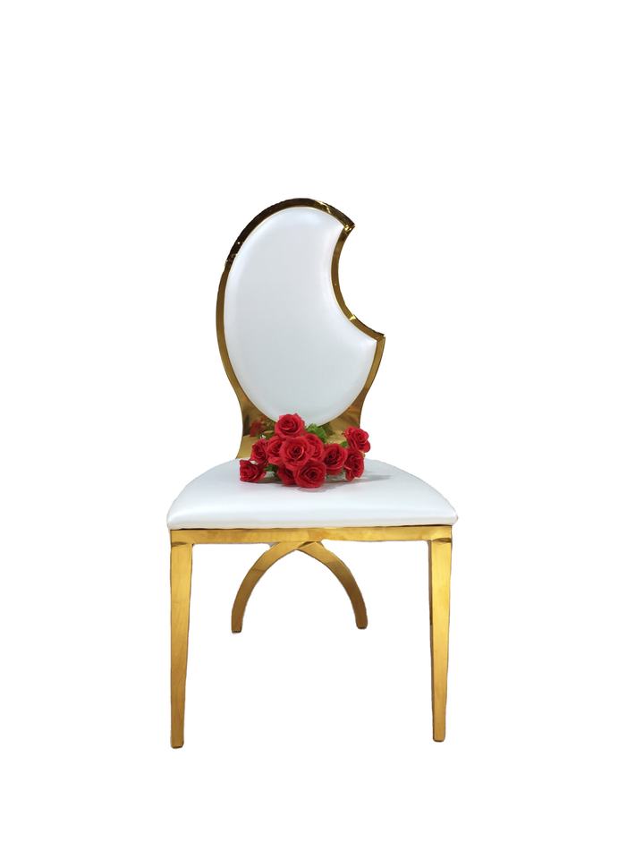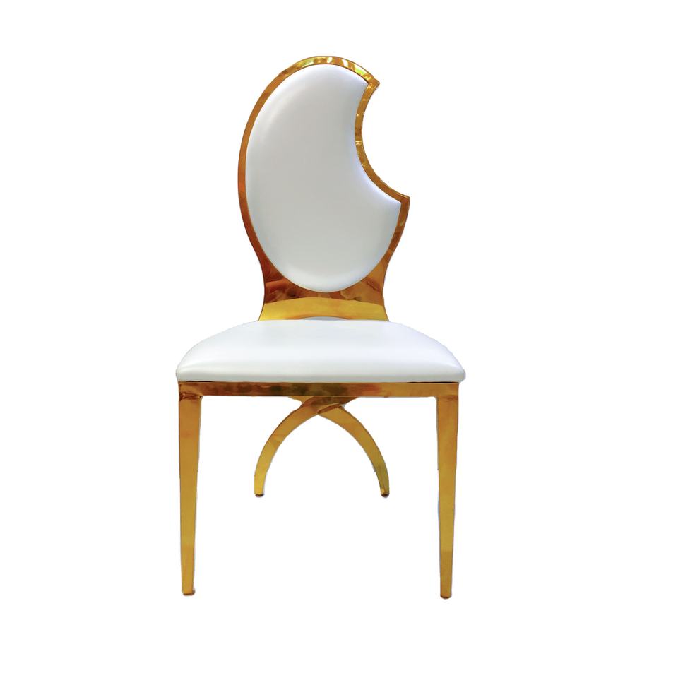 เก้าอี้สแตนเลสที่ทันสมัยพร้อมกรอบโลหะสีทองสำหรับงานเลี้ยงงานเลี้ยงกลางแจ้งโรงแรมร้านอาหารเก้าอี้แบบเน้นเสียง