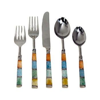 ชุดช้อนส้อมสแตนเลสแบบทันสมัยด้ามจับมุกเครื่องใช้บนโต๊ะอาหารสุดหรูสำหรับบ้านและโรงแรม