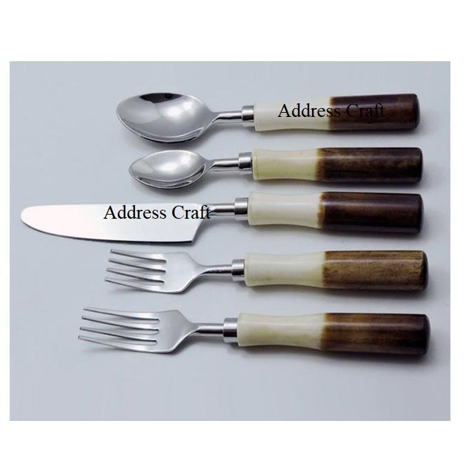 ชุดเครื่องใช้บนโต๊ะอาหารสแตนเลสแบบทันสมัยด้ามจับฮอร์นโบราณช้อนส้อมสำหรับงานแต่งงานเครื่องใช้บนโต๊ะอาหารงานขึ้นบ้านใหม่