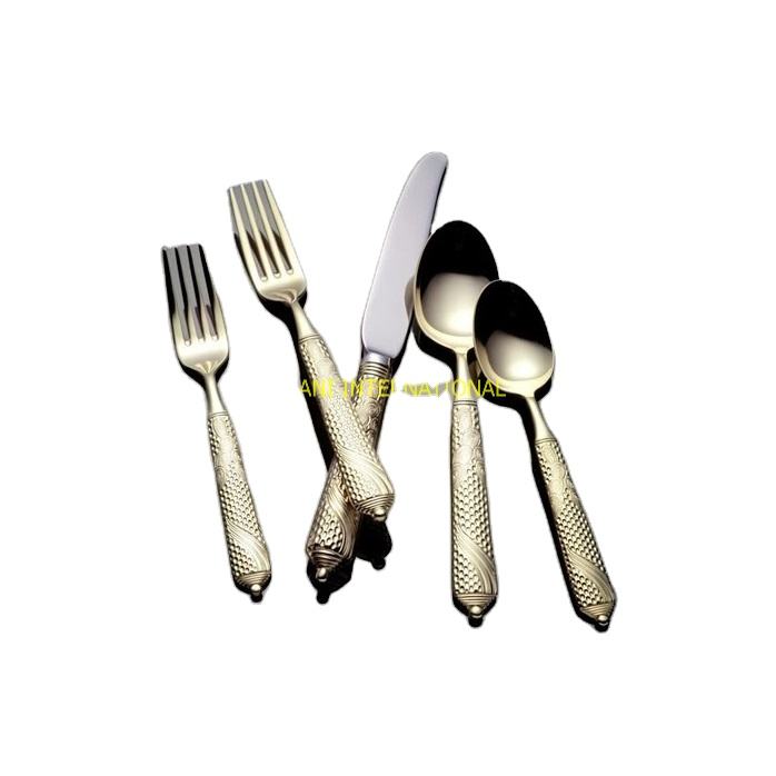 ชุดเครื่องใช้บนโต๊ะอาหารสแตนเลสแบบทันสมัยชุดช้อนส้อมมีดสีทองสำหรับงานแต่งงานและโรงแรมมีดส้อมช้อน