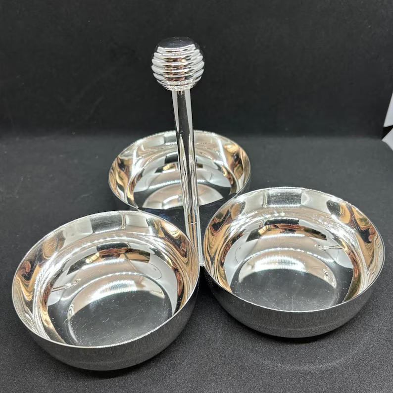 ชามใส่ช็อกโกแลต ถั่ว และอินทผลัม สแตนเลสสตีลสีทองเงินทันสมัย - ของตกแต่งบ้าน งานฝีมือโลหะสำหรับเทศกาลดีวาลี