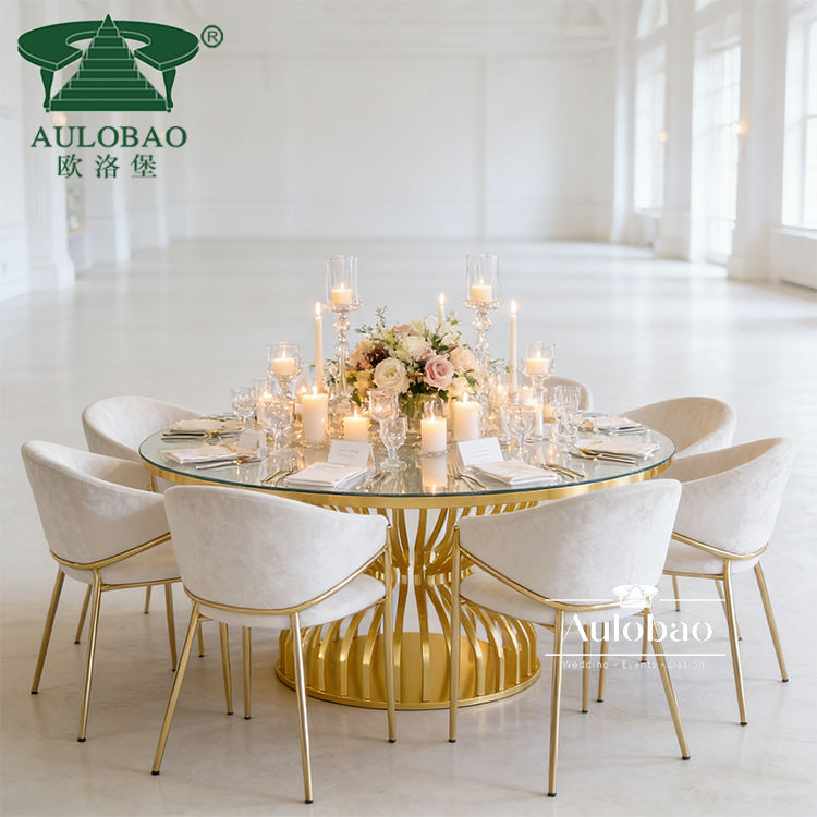 โต๊ะจัดงานแต่งงานทรงกลมโลหะสแตนเลสทันสมัย