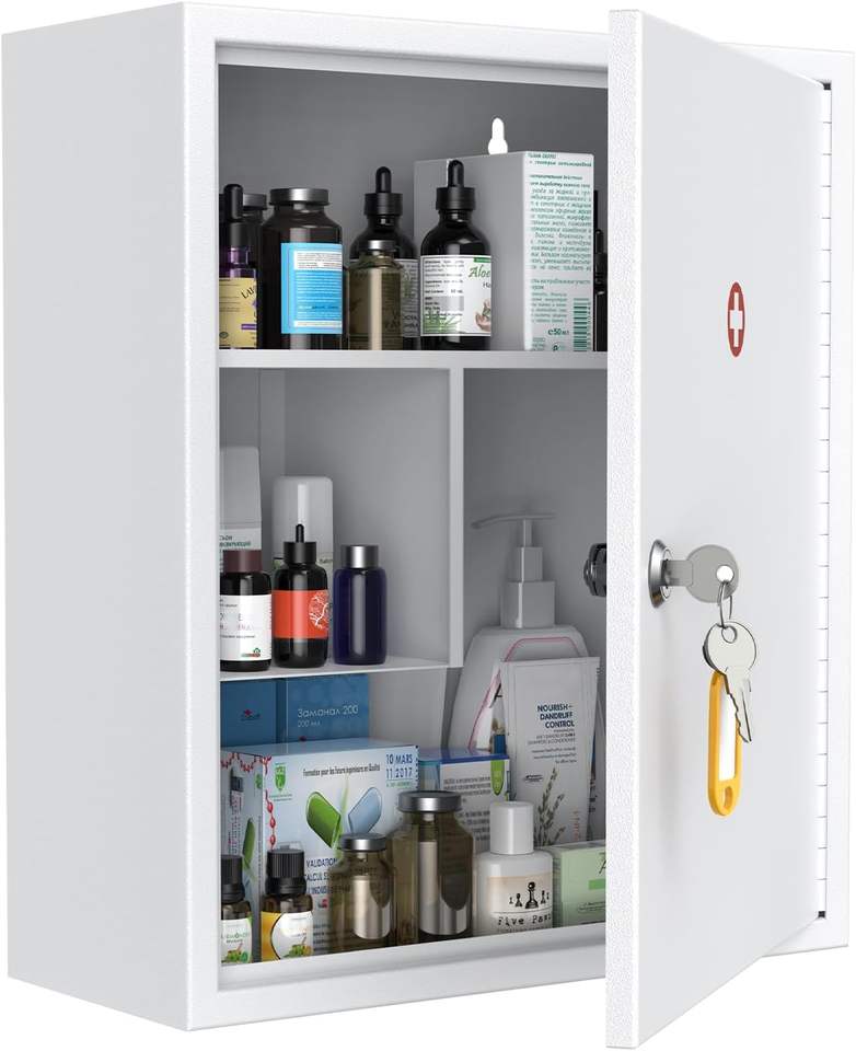 ตู้ยาติดผนังสแตนเลสสตีลทันสมัยสำหรับเวิร์กช็อป กล่องปฐมพยาบาลฉุกเฉิน กล่องเก็บยา รักษาสิ่งแวดล้อม พร้อมกุญแจล็อค