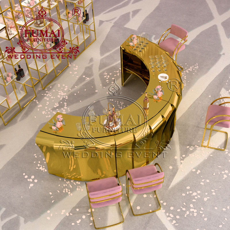 เคาน์เตอร์บาร์ครึ่งวงกลมแบบกำหนดเองเฟอร์นิเจอร์งานจัดเลี้ยงเหล็กแบบทันสมัยสำหรับงานแต่งงาน