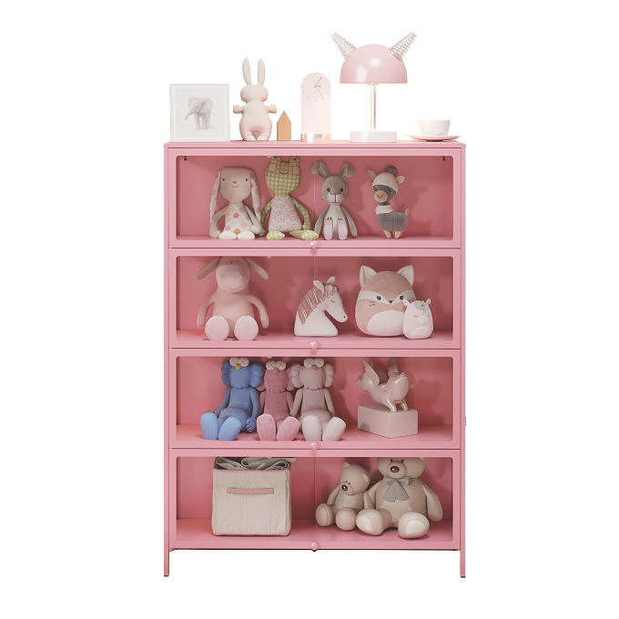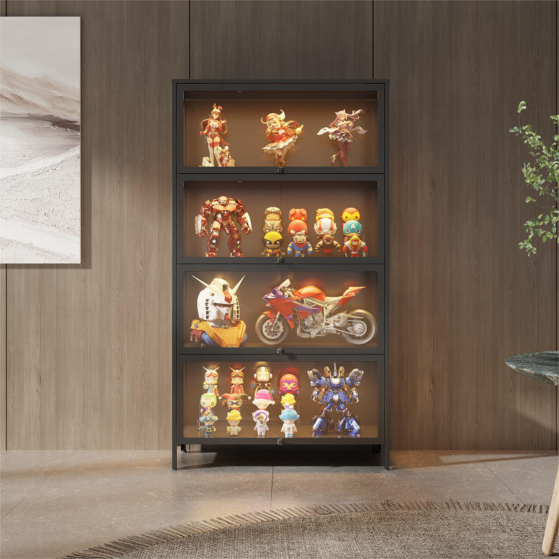 ชั้นวางหนังสือเหล็กสไตล์โมเดิร์นพร้อมบานกระจก ชั้นวางของแบบโมดูลาร์สำหรับเฟอร์นิเจอร์ห้องนั่งเล่น