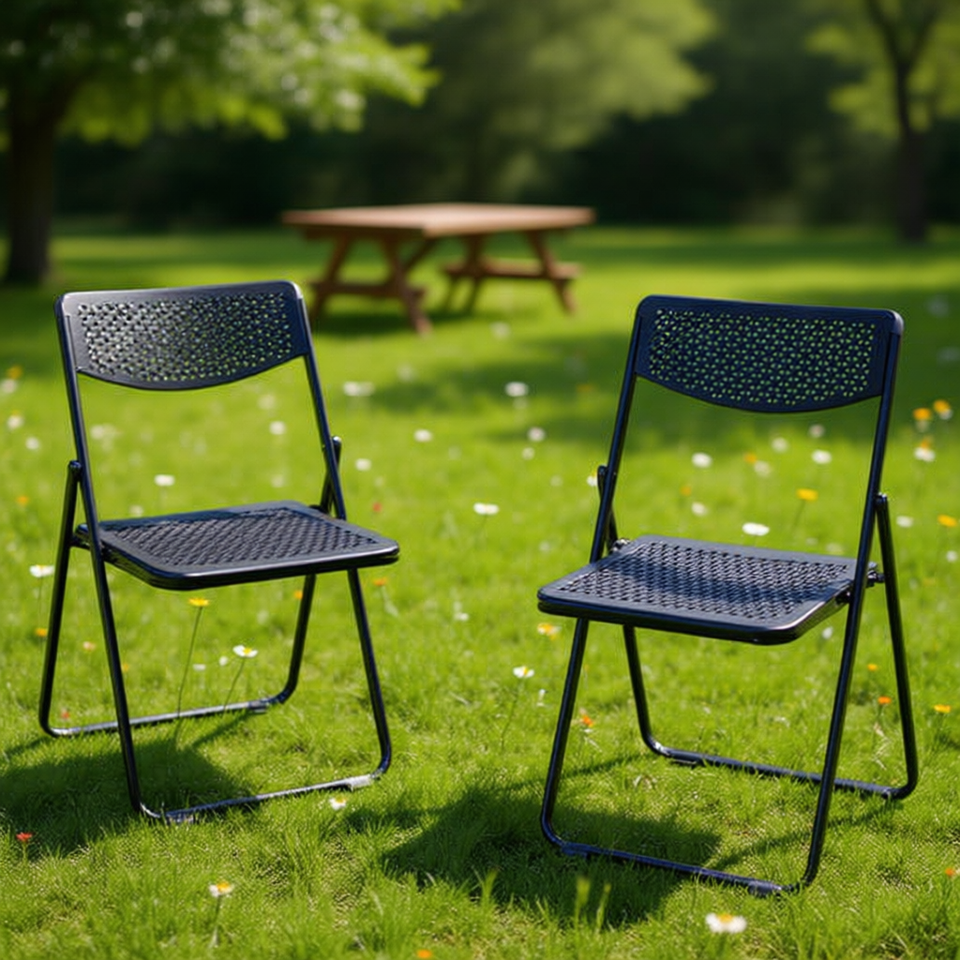 เก้าอี้เหล็กพับได้ทันสมัย สีดำ น้ำหนักเบา สำหรับใช้งานกลางแจ้ง สวน บ้าน ปาร์ตี้ ปิกนิก พกพาสะดวก