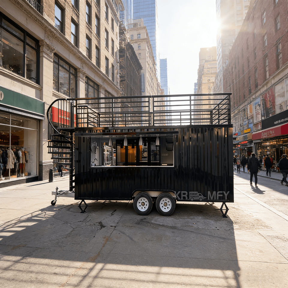 รถขายอาหารเคลื่อนที่ทันสมัย ตู้คอนเทนเนอร์ครัวเคลื่อนที่พร้อมล้อ ปรับแต่งได้ตามต้องการ ใช้เป็นร้านอาหารหรือพื้นที่จัดเลี้ยง