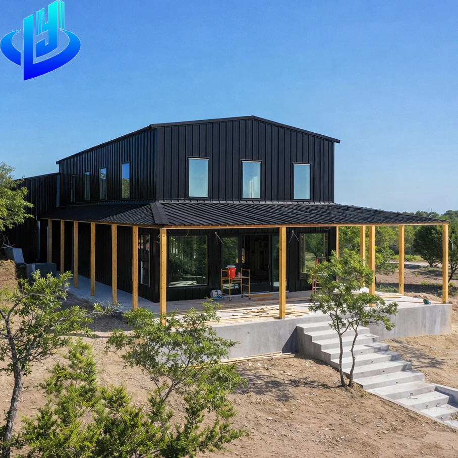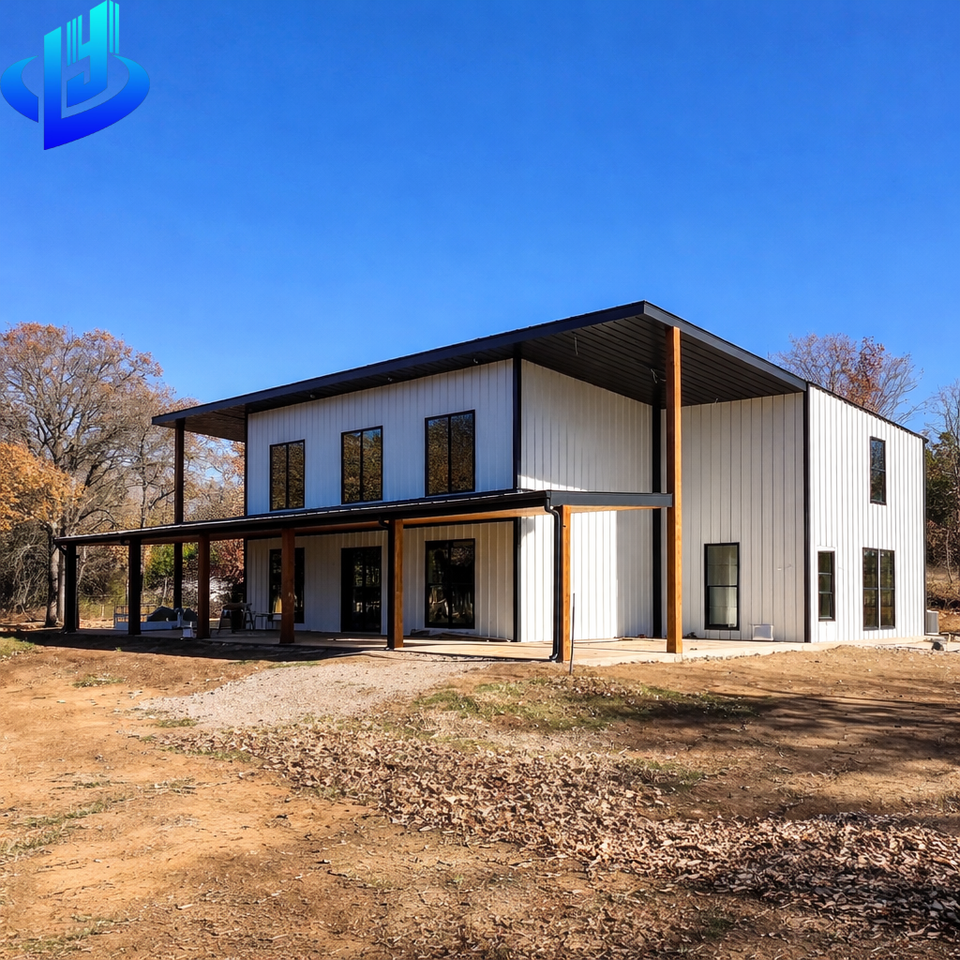 บ้านโครงเหล็กสมัยใหม่ บ้านเหล็กชั้นเดียว สองชั้น พร้อมระเบียง สไตล์บ้านไร่ร่วมสมัย ชุดสร้างบ้านสำเร็จรูป