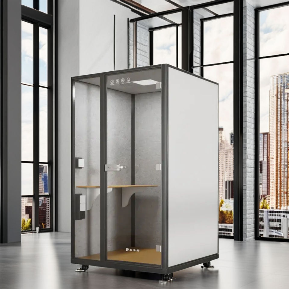 บูธโทรศัพท์สำนักงานแบบเคลื่อนย้ายได้ ทำจากเหล็กทันสมัย พร้อมระบบกันเสียง ระบบจัดเก็บ และระบบระบายอากาศ สำหรับอาคารสำนักงาน โรงพยาบาล และบ้าน