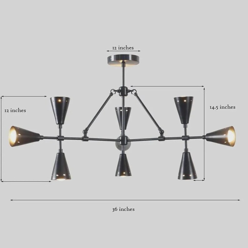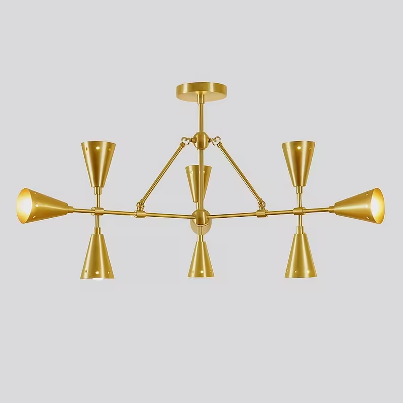 โคมไฟระย้าทองเหลือง 9 แขน สไตล์โมเดิร์น แรงบันดาลใจจากยุคกลางศตวรรษ สำหรับตกแต่งบ้านสไตล์ร่วมสมัย