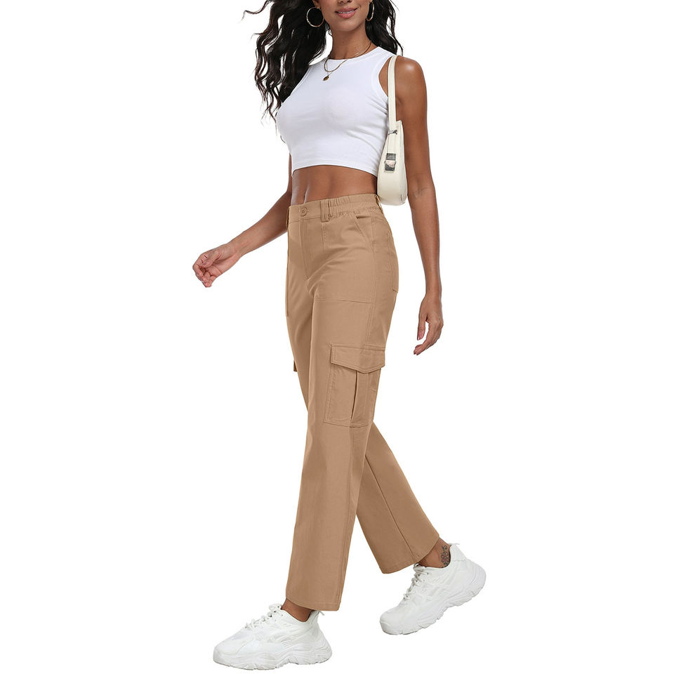 กางเกงคาร์โก้สไตล์สตรีทสไตล์โมเดิร์นมีกระเป๋าขนาดใหญ่ออกแบบมาเพื่อให้ผู้หญิงใส่สบายเอวกลาง