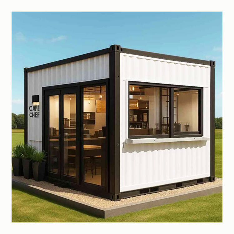 บ้านสำเร็จรูปสไตล์โมเดิร์นขนาด 20 ฟุต 40 ฟุต ติดตั้งง่าย เหมาะสำหรับโรงแรมชั่วคราว ร้านค้า สำนักงาน หรือห้องโถง