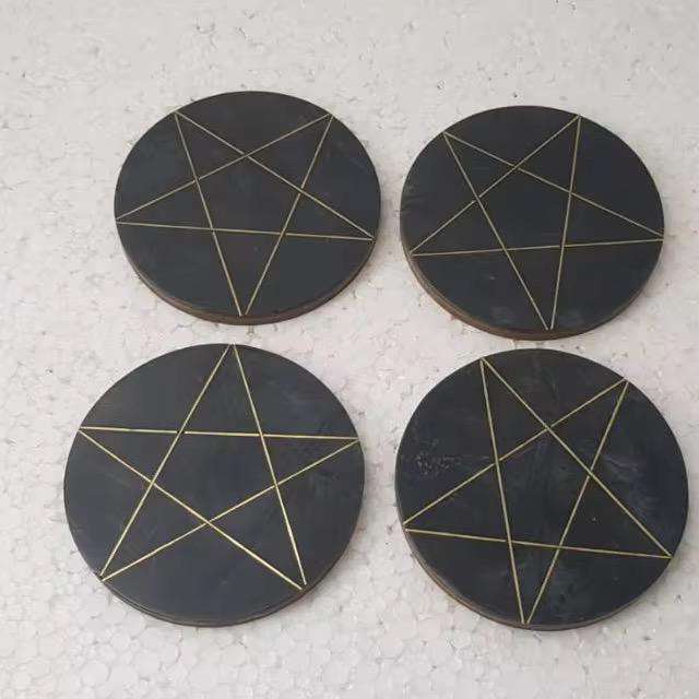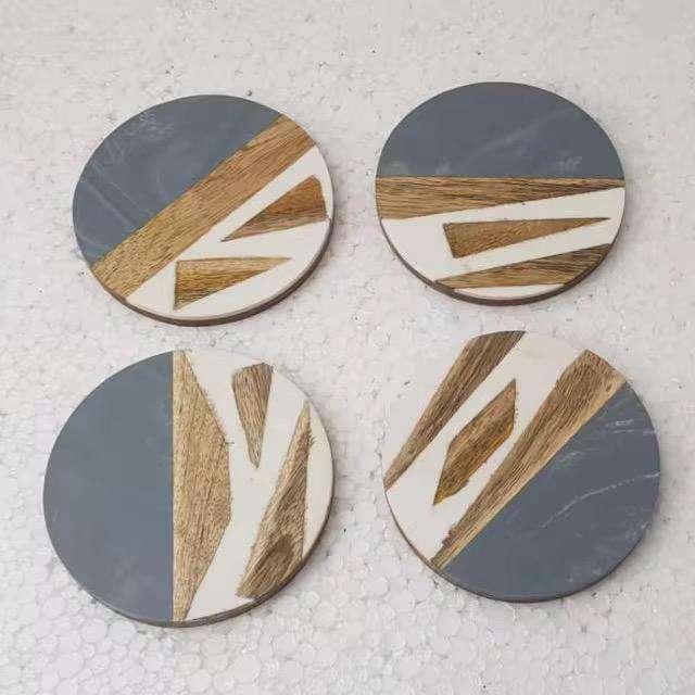 ชุดจานรองแก้วไม้และเรซิน4ชิ้นสไตล์โมเดิร์นดีไซน์ใหม่ศิลปะพื้นบ้านธีมความรักสำหรับตกแต่งบ้าน