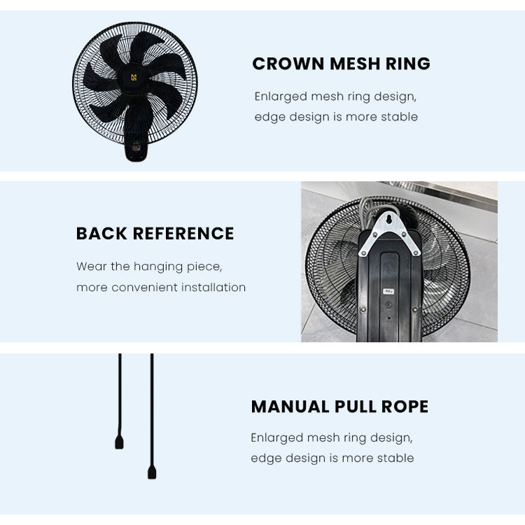 พัดลมติดผนังระบบสั่นอัตโนมัติพร้อมรีโมทควบคุมวัสดุพลาสติกสำหรับโรงรถและโรงแรมสไตล์โมเดิร์น
