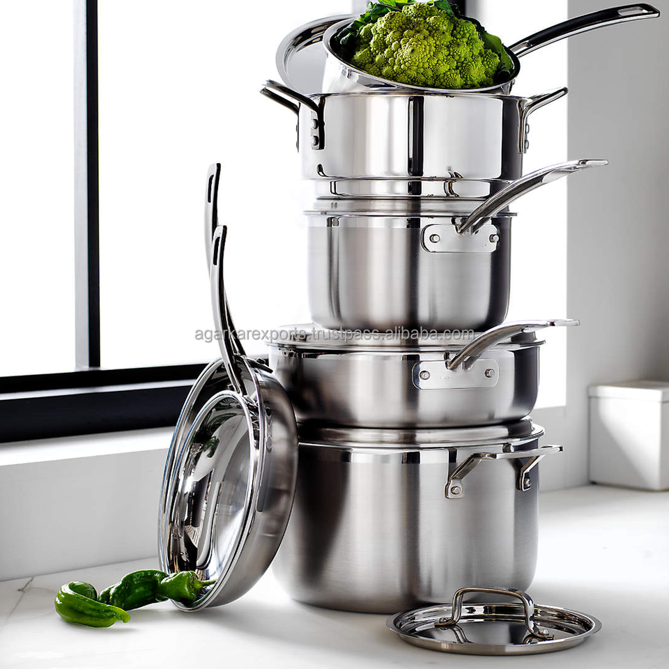 กระทะสแตนเลสแบบเหนี่ยวนำฝากระจกนิรภัยเตาแก็สใช้งานได้กับหม้อปรุงอาหารสไตล์อเมริกันทันสมัย