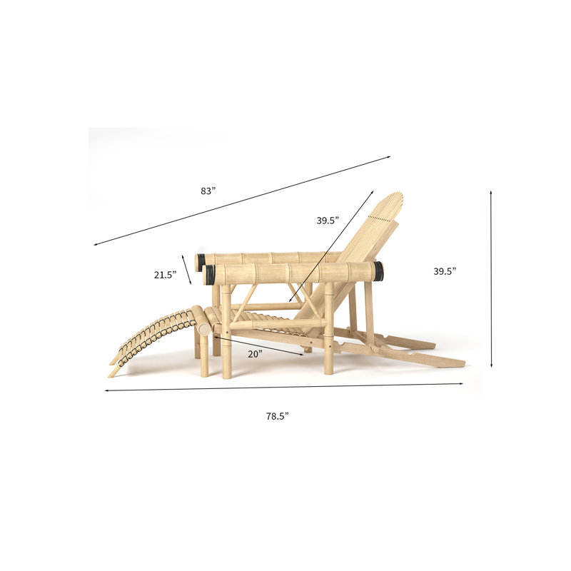 Dreamcraft เก้าอี้เลานจ์ทิกิไม้ไผ่สไตล์ทันสมัยพร้อมที่วางขาเหล็กและพับโลหะสำหรับใช้ในโรงแรมกลางแจ้งและวิลล่า
