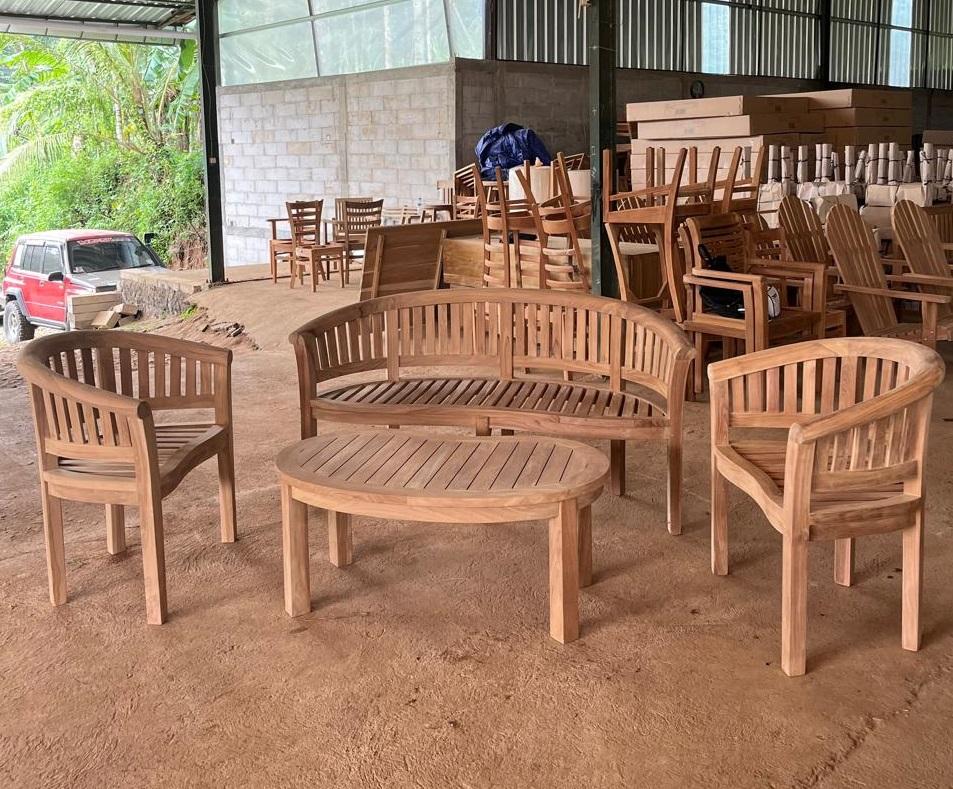 ชุดกล้วยสไตล์ทันสมัยสำหรับการใช้ชีวิตกลางแจ้งเฟอร์นิเจอร์ลานไม้สักจาก Jepara