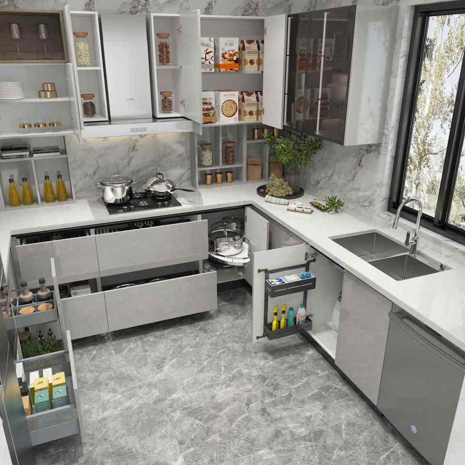 ตู้ครัวไม้เบิร์ชแท้สไตล์โมเดิร์น ขนาดเล็กอเนกประสงค์ เป็นมิตรกับสิ่งแวดล้อม ออกแบบตามสั่ง ปรับแต่งสีได้