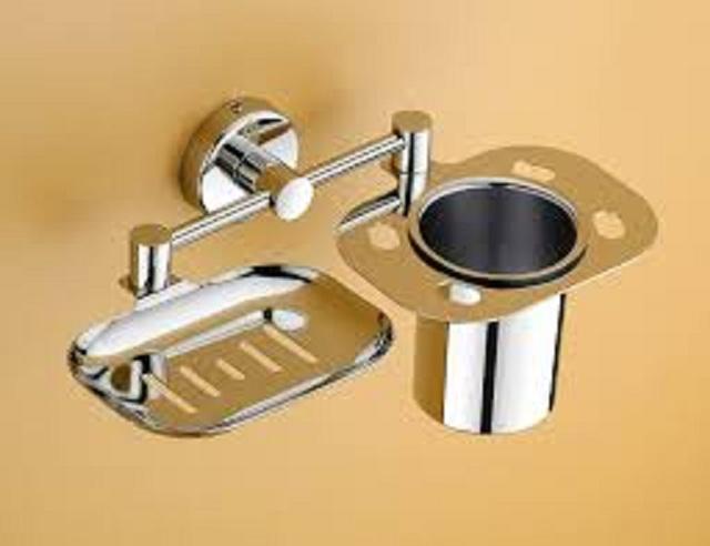 จานสบู่ทองเหลืองสไตล์ทันสมัยพร้อมที่วางแก้วนิกเกิลแบบพกพาสำหรับห้องน้ำหรือโรงแรม