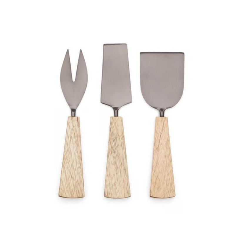 ชุดมีดชีสสไตล์โมเดิร์น ด้ามไม้กระถินเทศ ใบมีดสแตนเลสสีดำ เครื่องมือเสิร์ฟชีสสุดหรูสำหรับห้องครัว