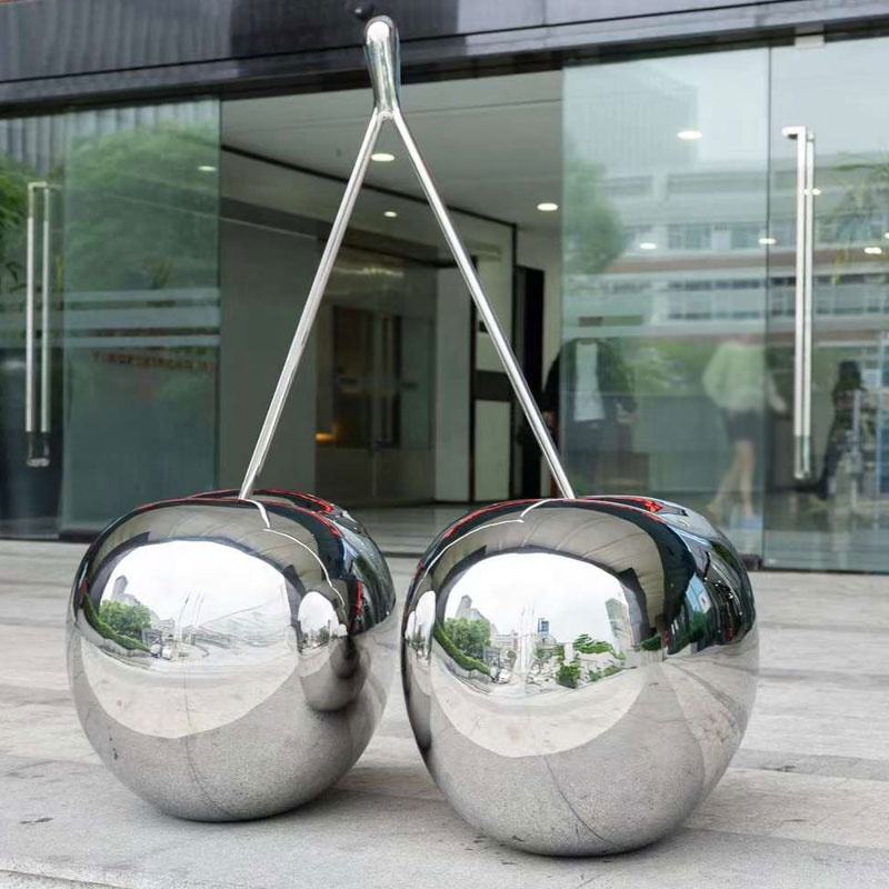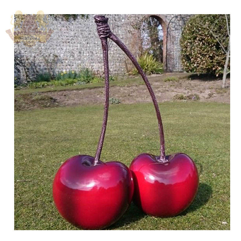 รูปปั้นผลไม้เชอร์รี่แอปเปิ้ลสไตล์โมเดิร์น งานศิลปะผลไม้ขนาดใหญ่ ทำจากไฟเบอร์กลาส ผลิตตามสั่ง สีเรซิ่นตกแต่งสวน ดีไซน์หวานสร้างสรรค์