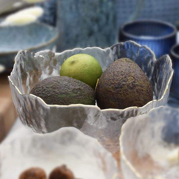 ชามเสิร์ฟทรงกลมทำจากแก้วใสพร้อมปูดีไซน์ทันสมัย