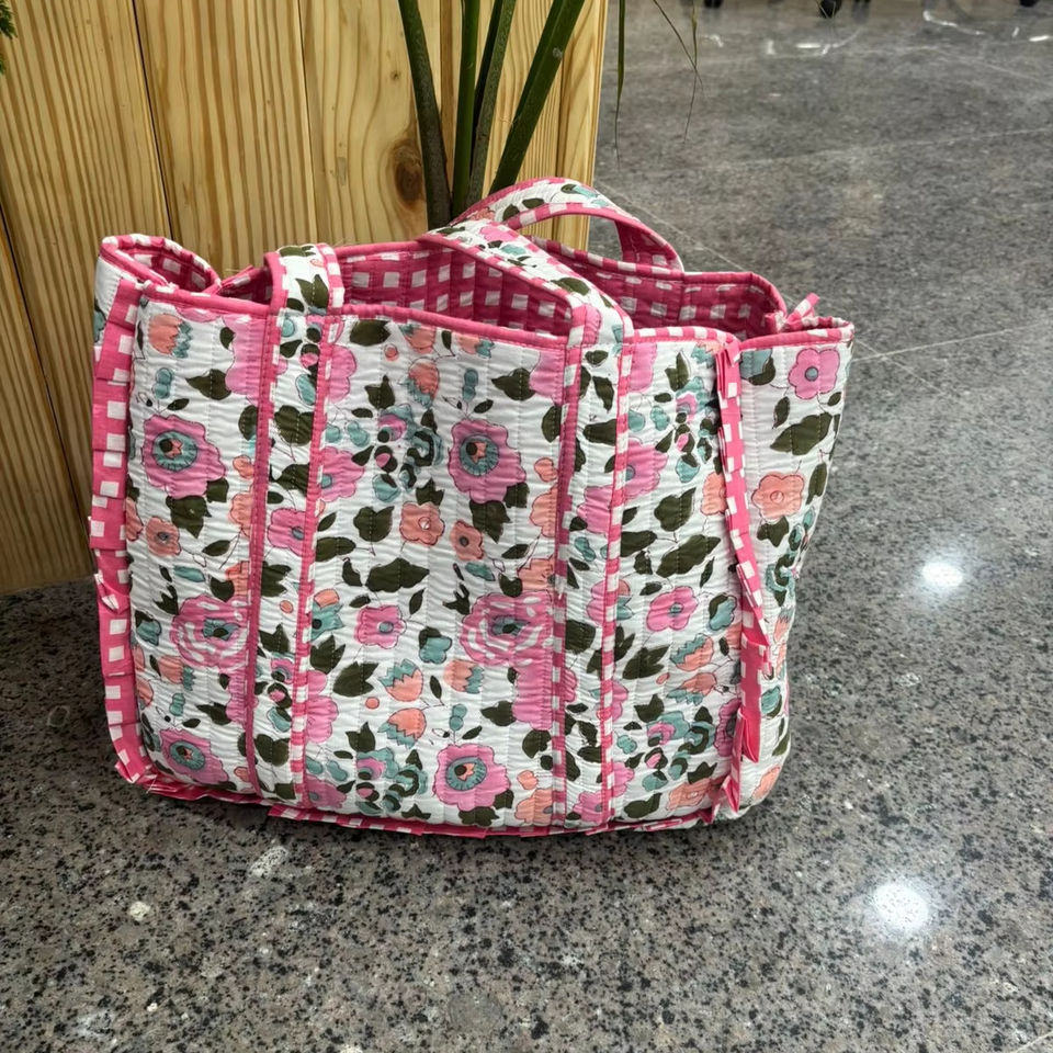 กระเป๋าผ้าฝ้ายสไตล์โมเดิร์น กระเป๋าช้อปปิ้ง/กระเป๋าสะพายไหล่ กระเป๋าเย็บลายตาราง สำหรับผู้หญิง กระเป๋าเดินทาง กระเป๋าถือสุดสัปดาห์ กระเป๋าถือทำมือ