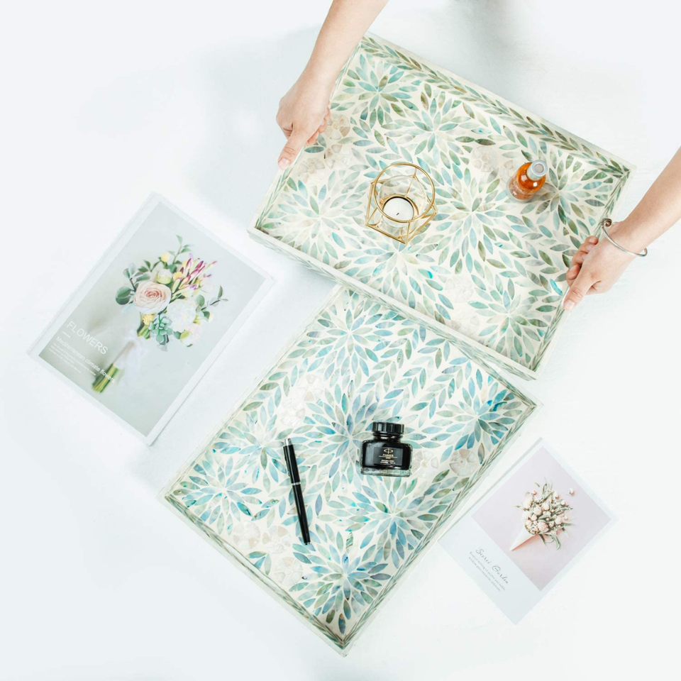 ถาดใส่กาแฟฝังมุกทรงสี่เหลี่ยม,ถาดทำมือแบบสร้างสรรค์สไตล์โมเดิร์นจากเวียดนาม