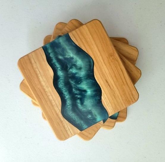 จานรองแก้วไม้เรซินและอีพ็อกซี่สร้างสรรค์สไตล์ทันสมัยของขวัญขึ้นบ้านใหม่สำหรับบ้านหรืออพาร์ตเมนต์